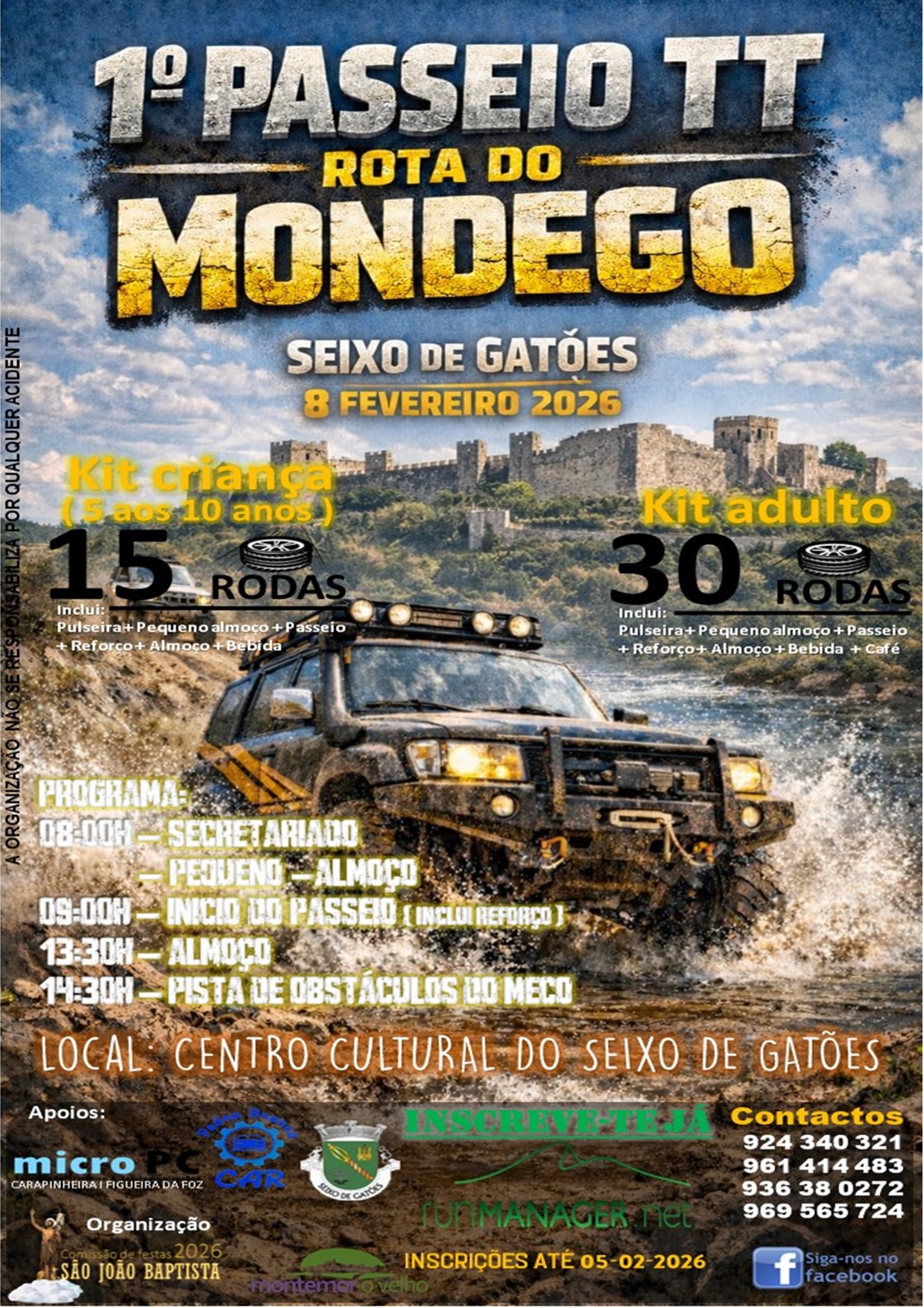 • O organizador pode definir vários percursos, escalões, preços,...